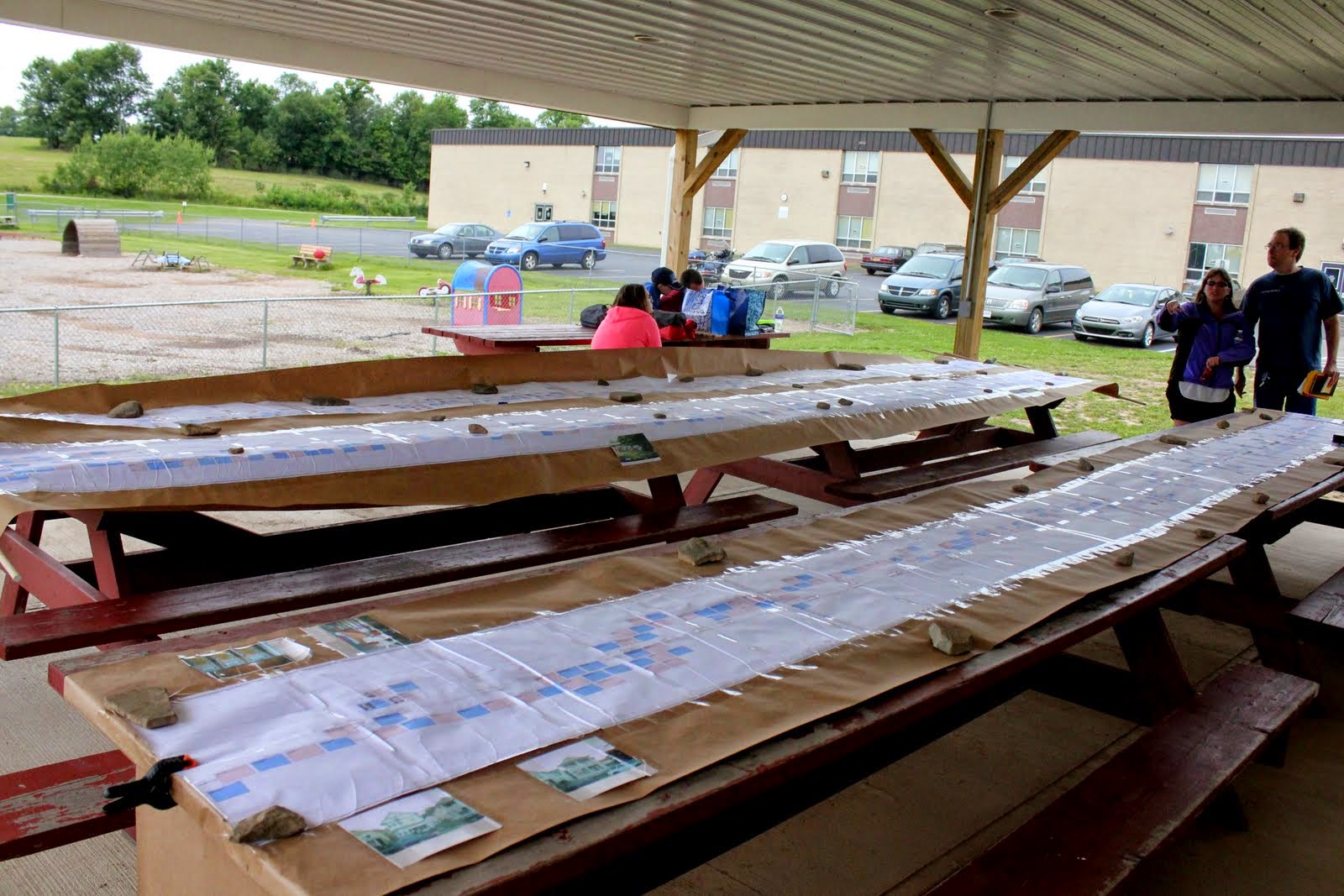 So many picnic tables covered with genealogies! This was impressive, even though I-- Abigail nee JOHNSON-- and the bounty of children with whom I live weren't listed among my parent's children/grandchildren. I have now concluded that, for all practical purposes, we do not exist.