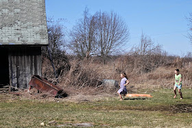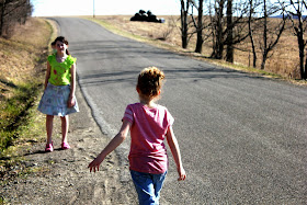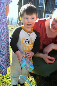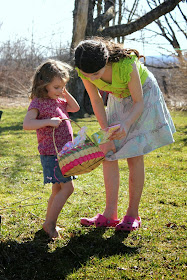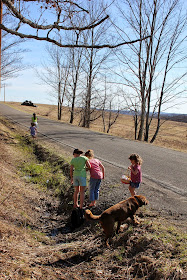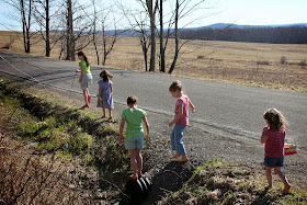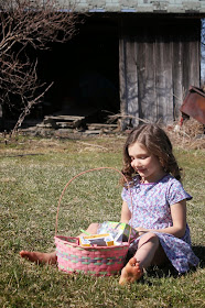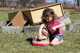She finally crossed the road (which is not allowed for Easter basket hiding) and found her basket near the culvert pipe.