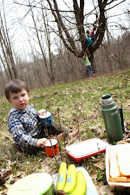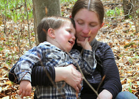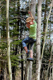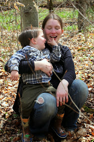 As tired as he looks, this boy was HAPPY and could have stayed in the woods all day. In fact, these days, he'd live outdoors if we let him, which isn't surprising considering he would have done the same in the thick of winter.