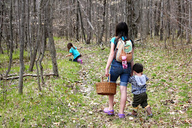 It's time for Wild Leek Soup! I always choose inopportune times to head for the Big Woods, but it almost always works out because time in the woods covers a multitude of parental error. So a little past what should have been lunchtime, right about the time the tired, three youngest should be tucked in for an afternoon nap, I packed a fifteen-pound picnic lunch and headed out with excited children running ahead.