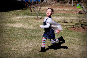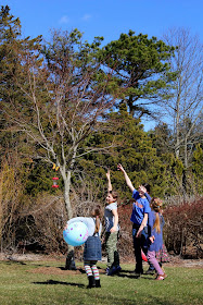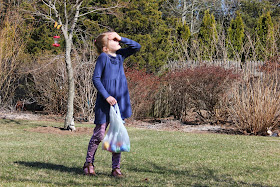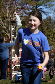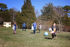 Oh, yeah. That "So Very Guilty" title to the post? Well, right after the egg hunt, the girls and I started a game of kickball, while Dude and John's mom relaxed and watched. She wanted to kick one ball for Millie, and guess who was the wild-armed pitcher watching in horror as she stumbled and BROKE HER ARM?!! Not me. It couldn't have been me. It wasn't me, right? (Sob.)
