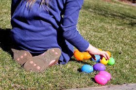 Dude hid 80-some eggs around the yard, but one of them-- The Golden Egg-- was not empty but contained a dollar bill. You should have seen them hunt for that sucker!