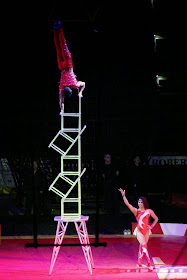 This was the first evening show we've ever attended, and it didn't begin until after 7:00. Zeke was overtired and whelmed and screaming*, so a few minutes in, John walked (an hour!) to his car in the adjoining town to drive him home while we enjoyed the glitzy veneer of the circus.