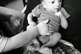 Now, again, I hear high-pitched hiccoughs and feel a tiny leg quivering in sleep. With bony knees drawn to his belly, he's a small, whorled seashell curved into itself. Little goat grunts and high, squeaky sighs come first, and then his eyes roll back into his head as sleep comes.
