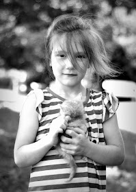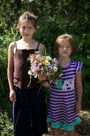 So, of course, it follows that last week the girls discovered one of the kittens cold and stiff, mysteriously departed from this life. It was Piper's kitten, and she was disconsolate for the day. I didn't realize how upset she was until my parents dropped in and asked if Piper was sad. "Why?" I asked. When they pulled in the driveway, she was sitting by the lower garden, still wearing her nightgown and with her head in her hands, and she stayed there for the whole visit. Why the lower garden?