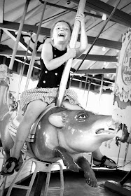 The day before they left, we went out for ice cream and rode on one of the area's free carousels. I don't have many snapshots of their time with us, but here's Luci on a wild pig!