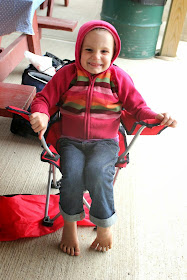 I include this picture because it so perfectly captures Luci's scrunch-faced delight when her name was drawn out a hat to win the cool, little camp chair on which she sits.