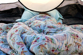 We only had one family sleepover, but the girls camped out a few nights by themselves, and on dry days, the youngest three took their naps there or made mischief when they should have been sleeping. For some reason, I only took pictures when they were peacefully sleeping. There are no pictures of me snapping at them when I found them making mischief. (Huh. That's weird.)