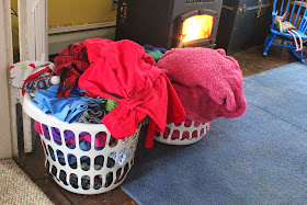 and here are the baskets of laundry that still remained when they walked in the door. (Not shown are the two garbage bags of fabric-to-sort that I stuffed into my closet.)