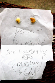 HA!  I did take a picture of the note!  Dude, these yellow foam creatures made their way into the garbage can pretty quickly...