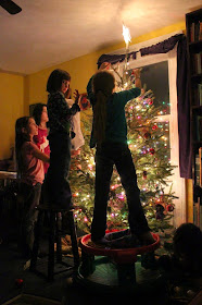 Then the children turned our Jesse tree (sorely bare this year) into a Christmas tree.