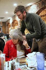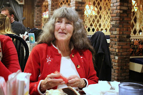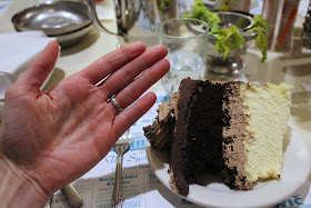 Here's my impressive dessert. Mom and Dad rarely ate out when we were growing up, but they ate here once or twice when we children were quite young, and we have vivid memories of her bringing home most of her GIGANTIC dessert to share with us. Continuing the tradition, I did the same for my own.