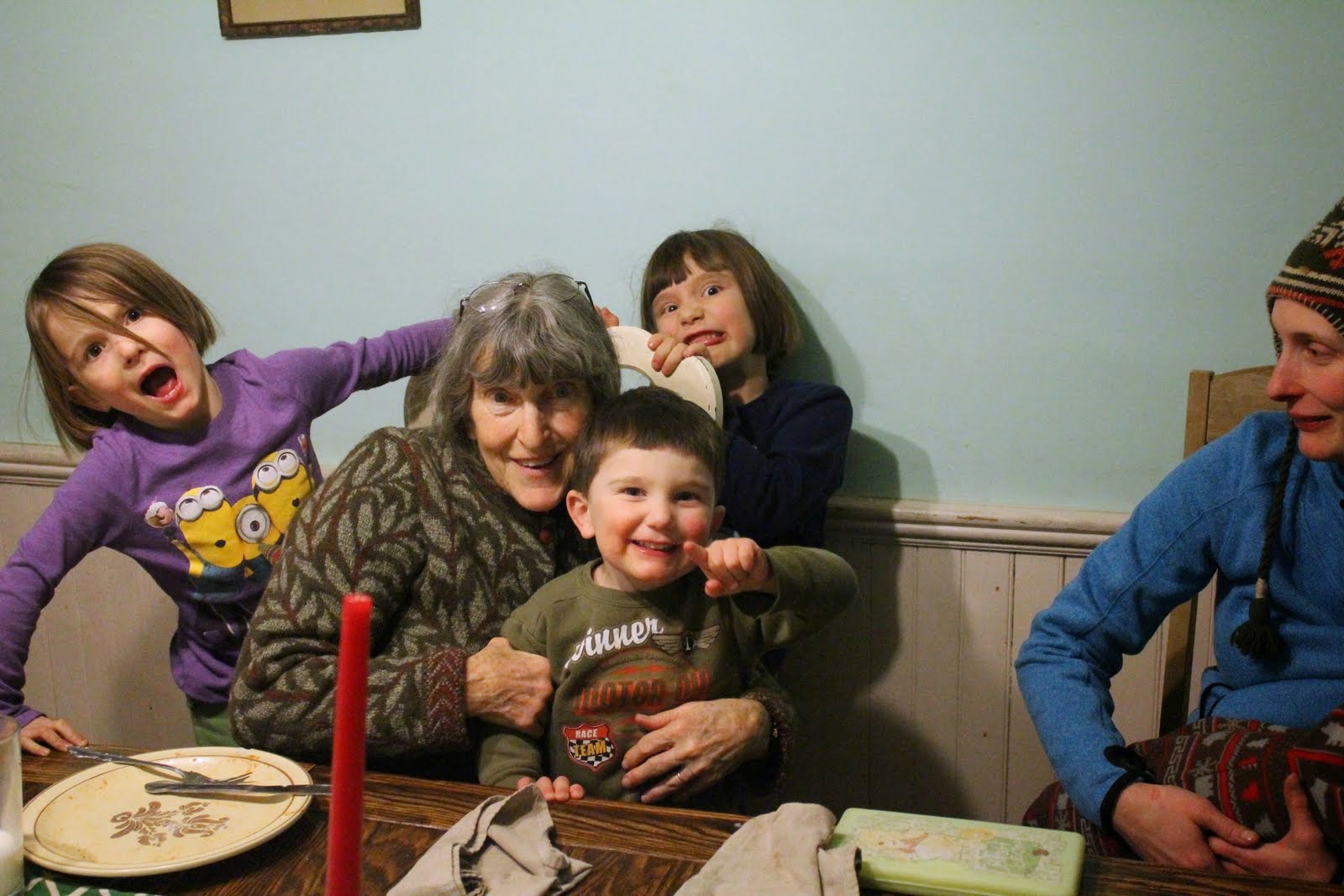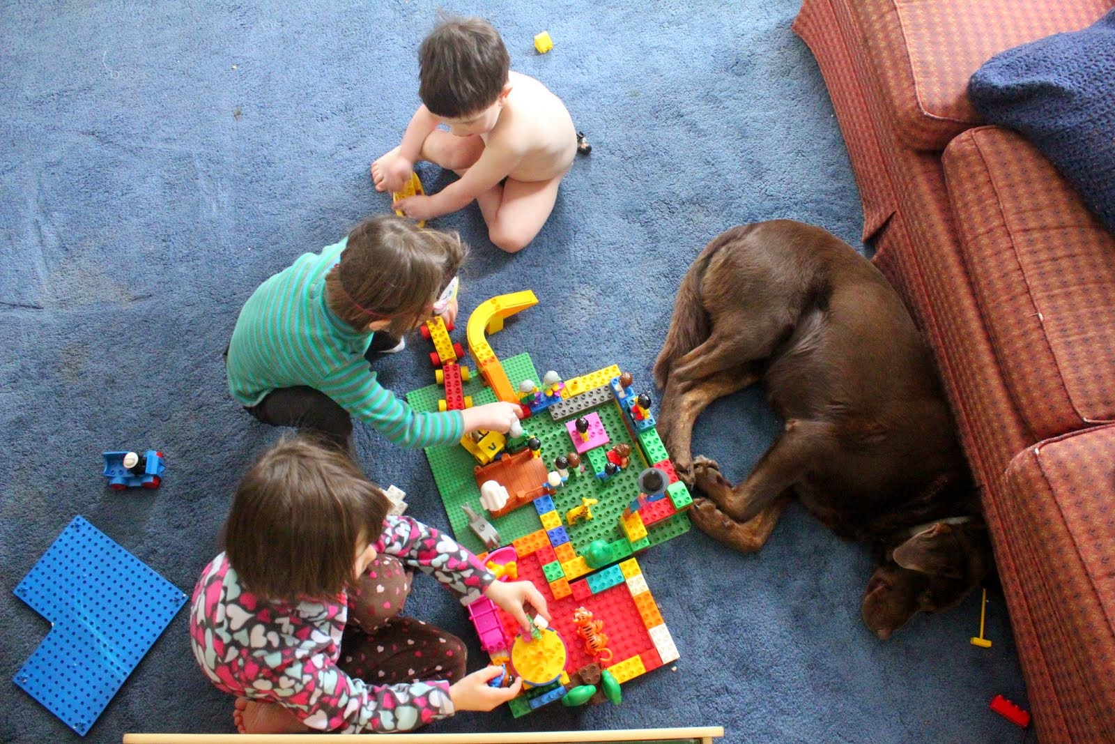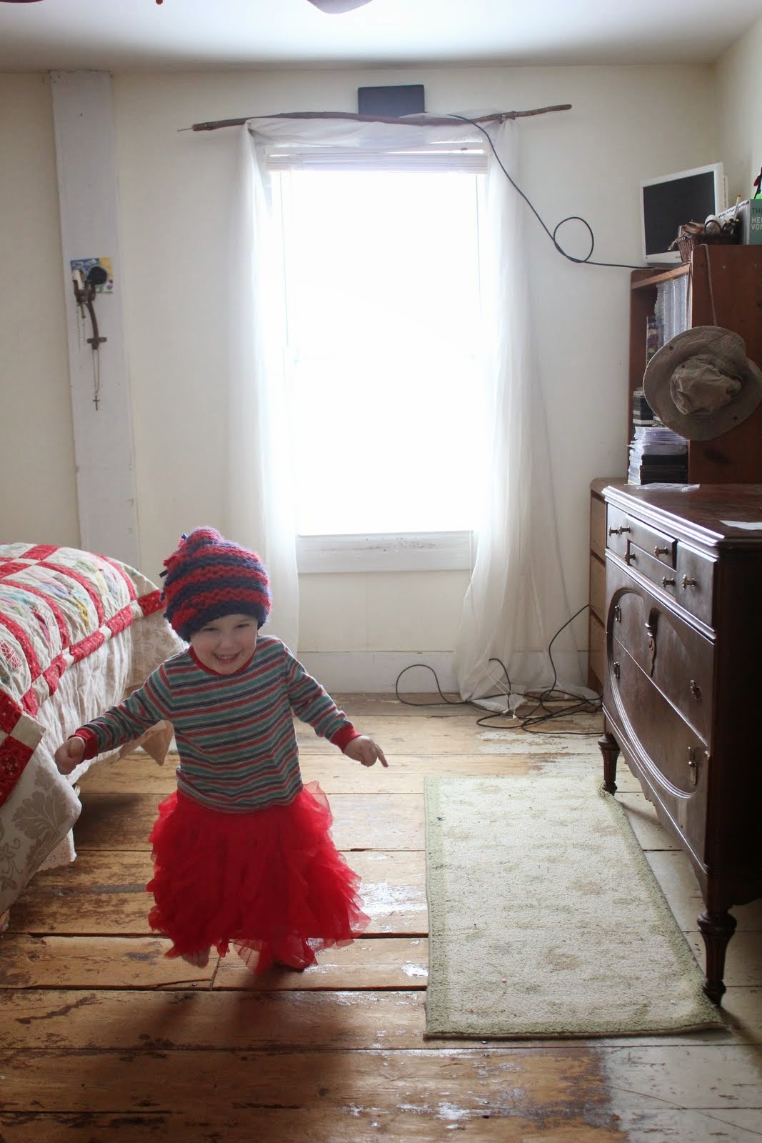 My eldest daughter retires under the table when she sees the camera, but not without remembering to grab her chai. (Smart girl.)