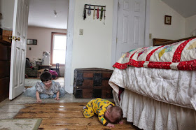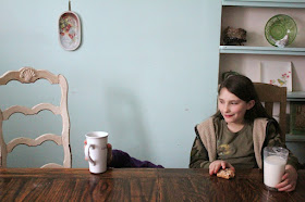 My eldest daughter retires under the table when she sees the camera, but not without remembering to grab her chai. (Smart girl.)