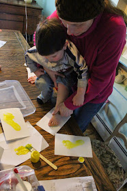 He provided lots of footprints, which tickled, and we laughed a lot.  (See!  I wasn't a curmudgeon at the very beginning, nor had the mounds in the dining room grown too high.  Could these two things be related...?)