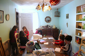 The younger three still needed help, though.  I blame this fact (and not my weak state of righteousness) for my general lack of goodwill at the end of our three-day card-making session.  After we'd finished, Luci wanted to make more, even though she'd made some for everyone on her list, and Debbie heard me say, "I'm sorry, Luci, I just can't help you make valentines and be cheerful anymore."  before muttering under my breath, "I just don't like people."