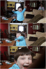 John rarely takes photos, so when he grabs the camera and starts shooting from (literally) the hip, I'm not one to put up a fuss.  If he'd put his eye to the camera before he starting taking pictures of us, he would have noticed that the zoom was engaged, but then we wouldn't have these funny pictures, would we?