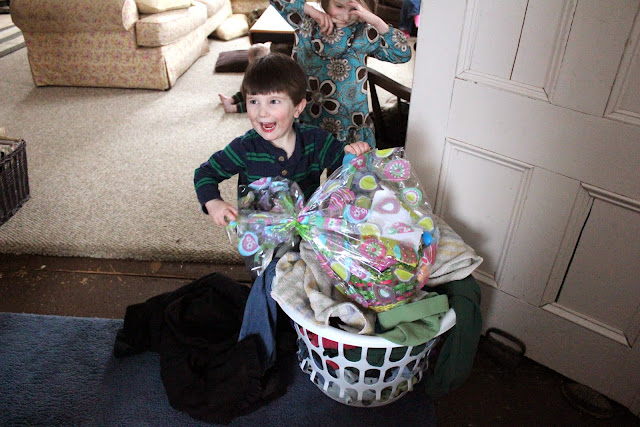 How convenient to have a basket of laundry waiting to be folded in the corner!  I didn't hide it when company arrived because I knew it might come in handy. Yeah, that's why...