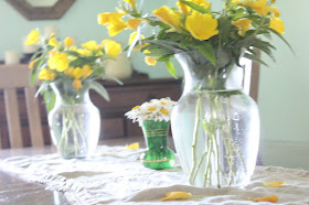 The girls did the flowers! Every time I turn around in the summer, new vases pop up, stuffed with blooms. I have a feeling that it's a lack of rain more than a lack of green thumbs in your case. :)