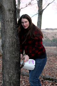 Here's a funny picture of me dressed like an urban lumberjack to collect sap. I post it because I think it was the same day that I asked Millie to trim my gross hair. She trimmed off four inches, and then I just kept cutting in a vain attempt to make my face look less chubby. (Both meanings of "vain" apply here.)