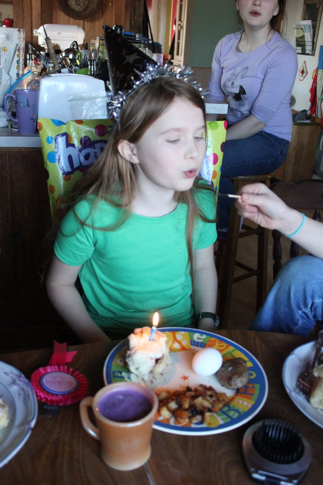 To begin her day (which was over a month ago now), here's the birthday Bird playing pat-a-cake before breakfast.