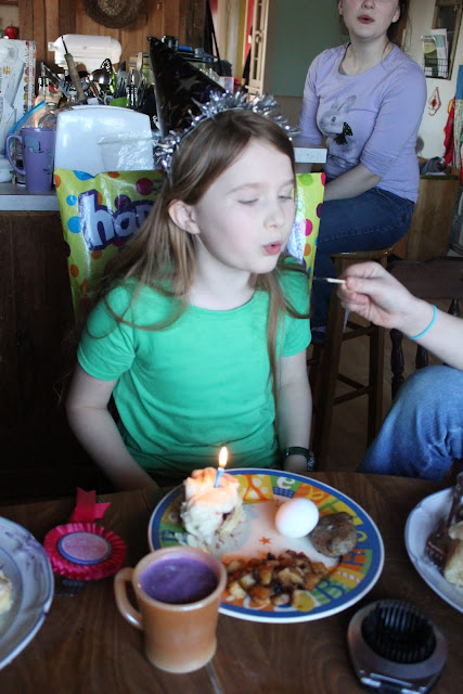 This may the last bonafide birthday cake for the big girls for the forseeable future. We've had so much untouched cake at the end of each birthday lately that my sister and her family are probably sick of it, too, considering I ferry them all the leftovers. Ice cream, on the other hand, is the big draw, and Annika has already requested an ice cream cake for her Foolish Day.