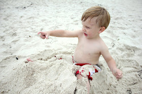 John dutifully took us to the beach! The grey clouds ensured that we had nearly the whole place to ourselves, and the children made the most of it with shell-gathering, seagull-chasing, sand-burying, and, of course, the sea, itself.